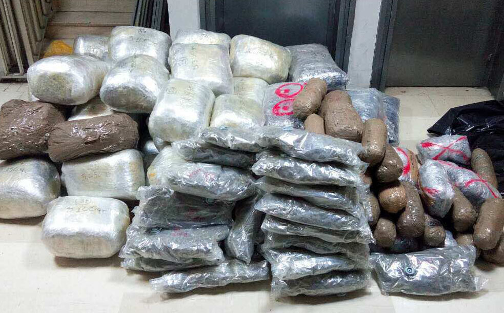 και μεγάλες ποσότητες αλβανικού χασίς, που έχει κατασχεθεί επίσης από τους αστυνομικούς των άλλων